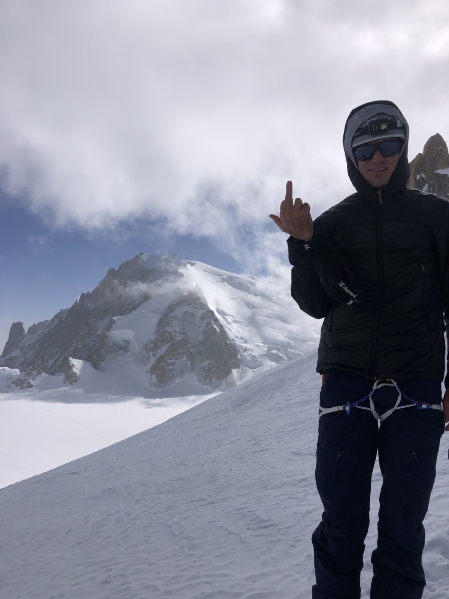 I didn’t look down at the 1,000-meter steep north face below me. My climbing partner, Patrick, removed the last ice screw from Glacier du Géant on Aiguille du Midi. Connected with 50 meters of rope and no ice screws between us, crampons and ice axes were our only anchor to the mountain.